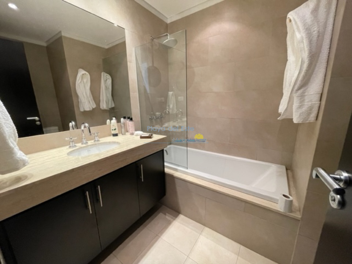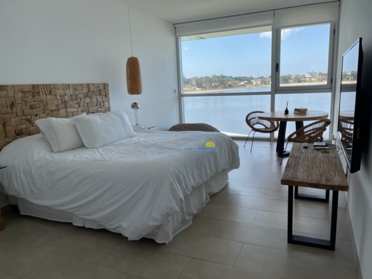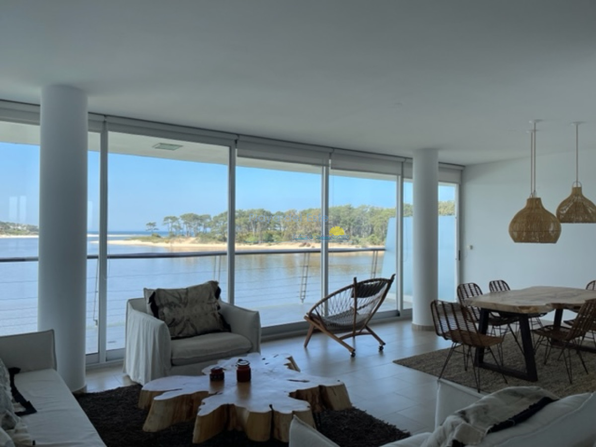 Apartamento con vistas espectaculares al arroyo y desembocadura al océano. 3 suite, toilette, garaje, aire acondicionado, sabanas y toallas. Piscina, gimnasio, vigilancia 24 horas, servicio de mucama, servicio de playa en la desembocadra.