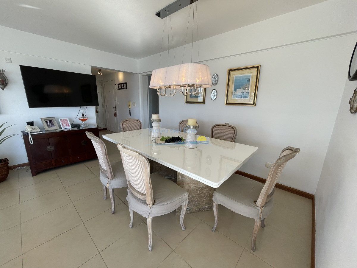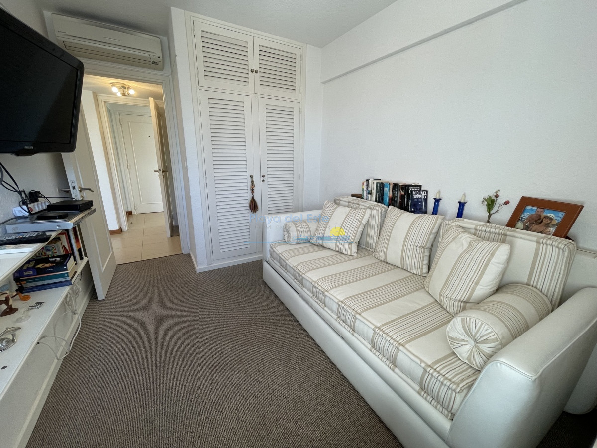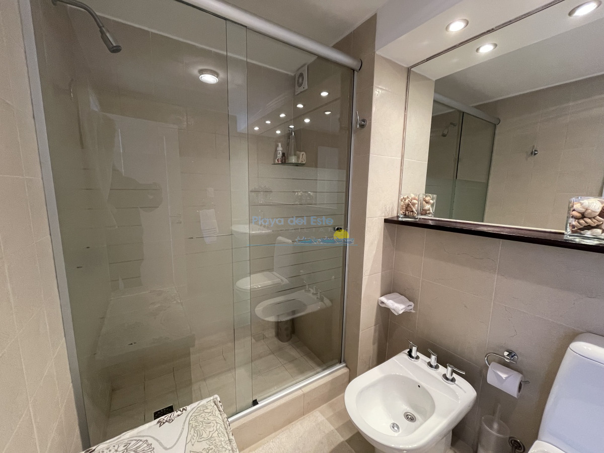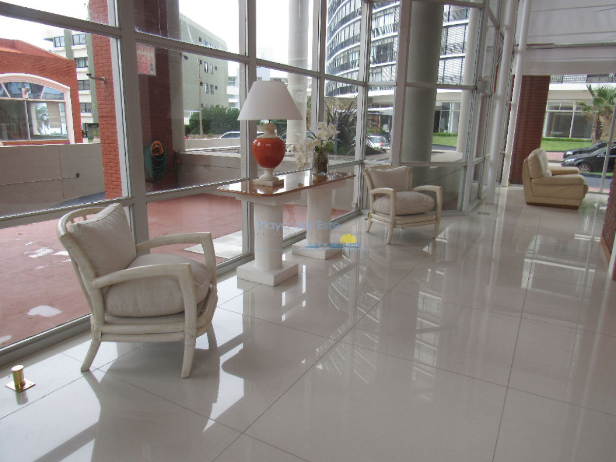 Tiene aire acondicionado en living y suite principal. Muy bien amueblado y equipado. El edificio tiene recepción las 24 hs. portería, servicio de mucama, servicio de playa, gimnasio.