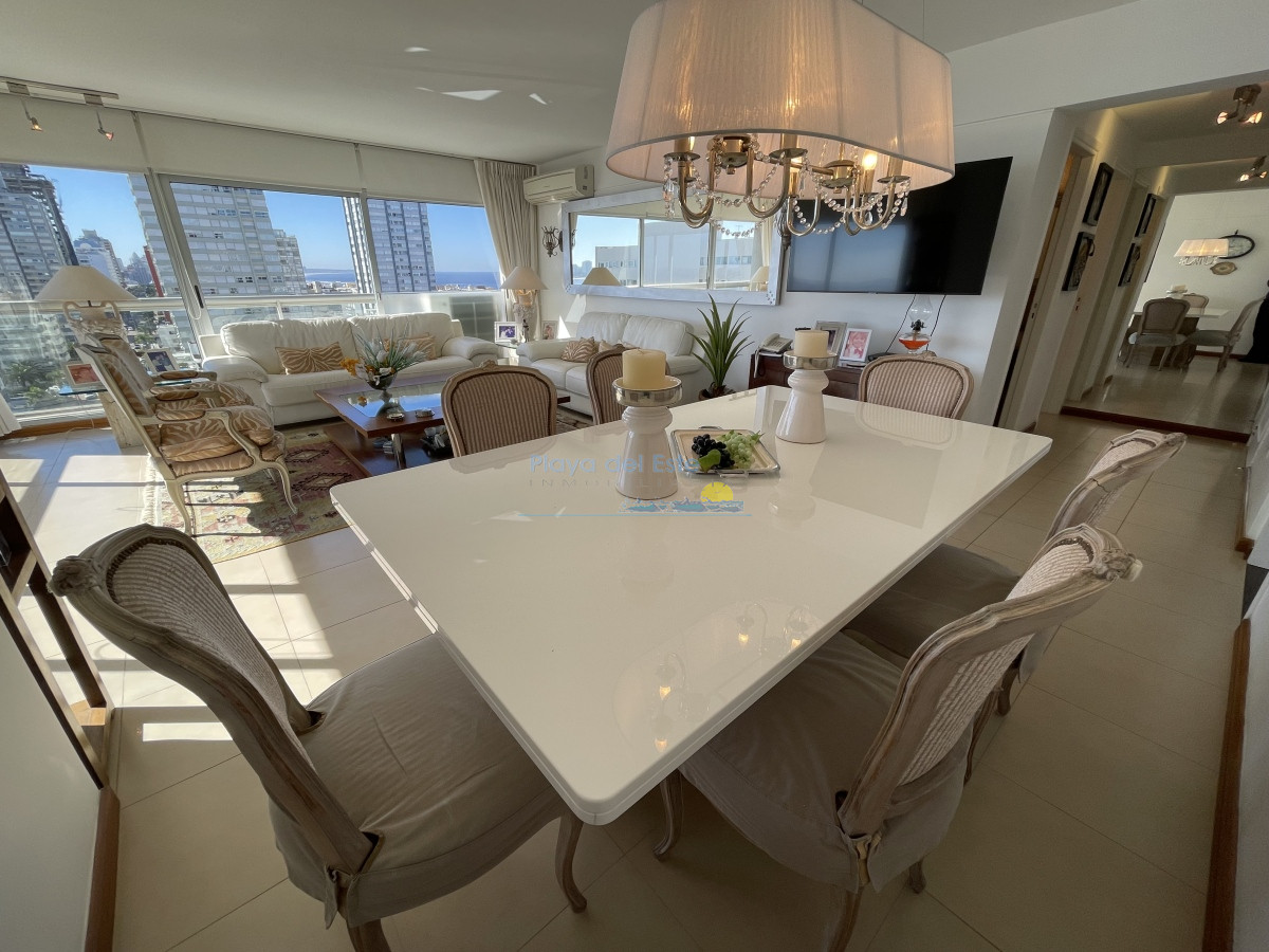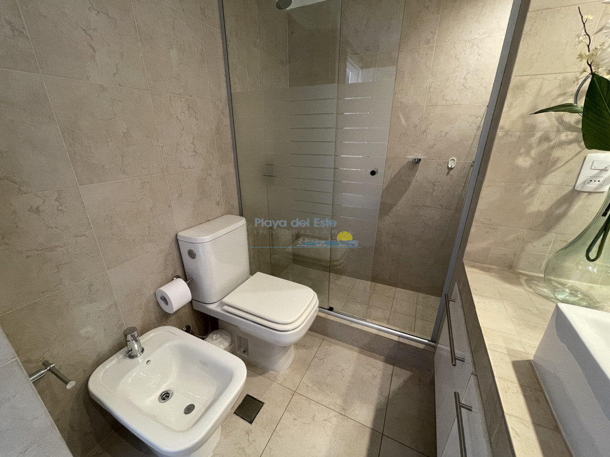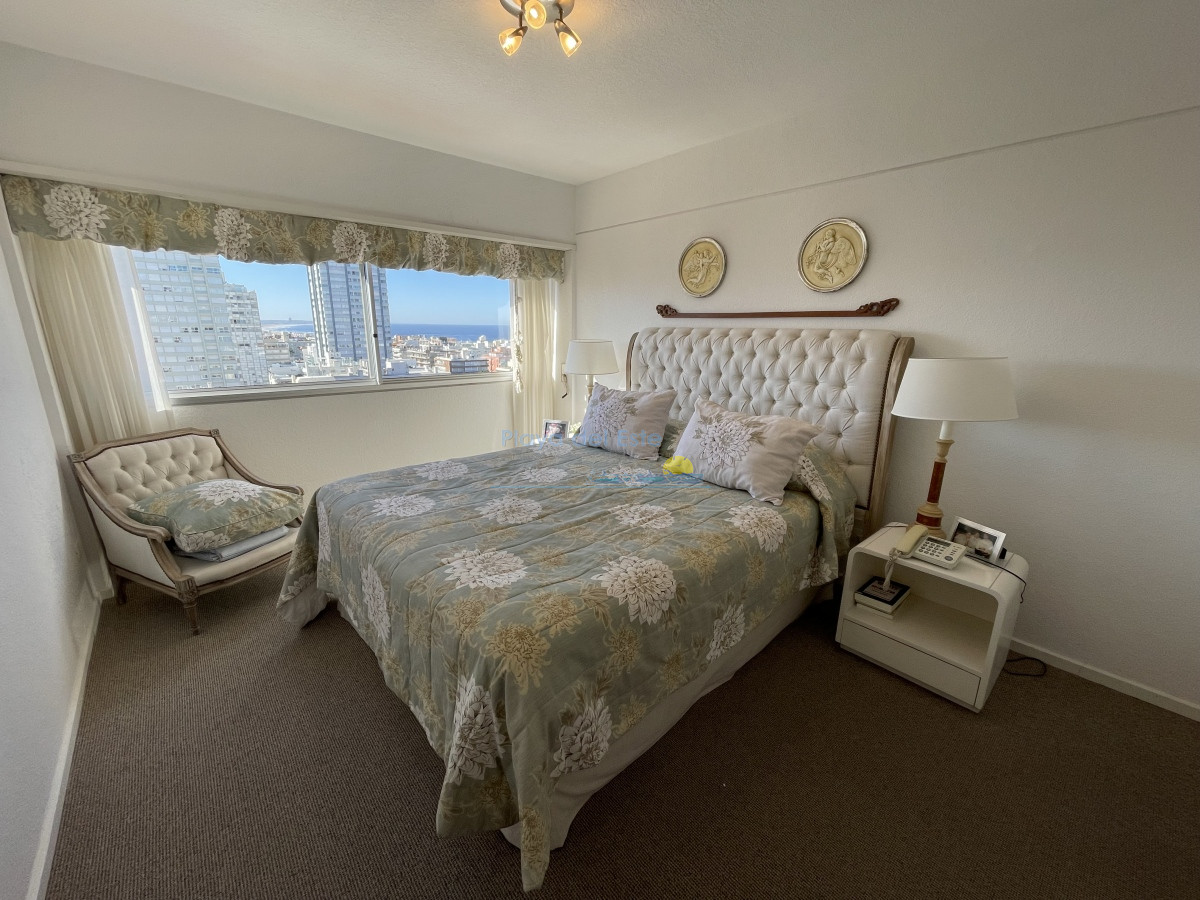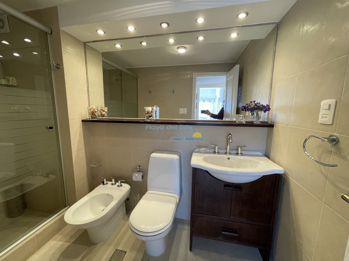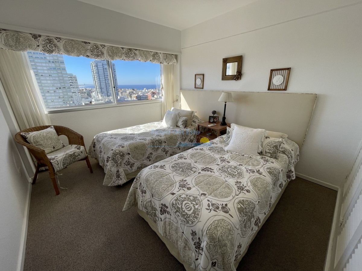 Tiene aire acondicionado en living y suite principal. Muy bien amueblado y equipado. El edificio tiene recepción las 24 hs. portería, servicio de mucama, servicio de playa, gimnasio.