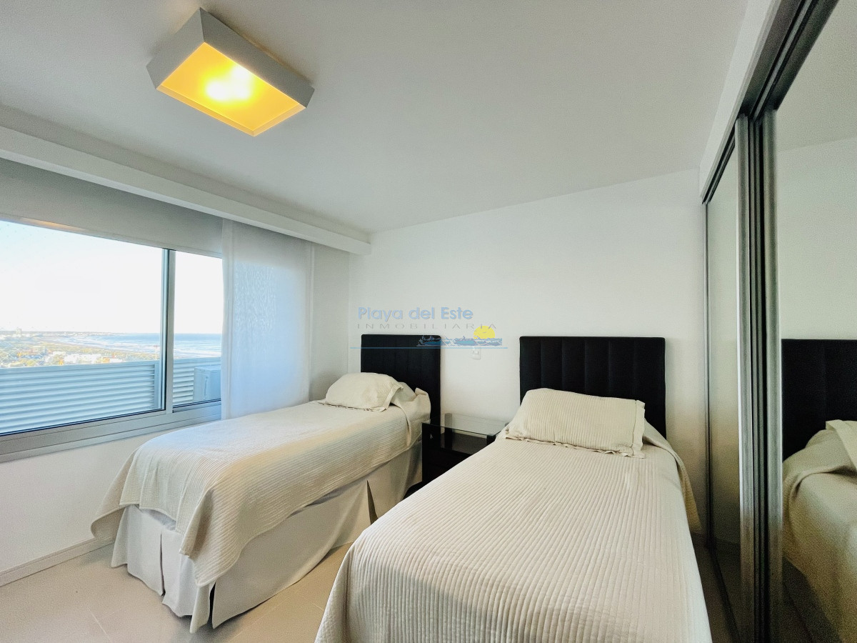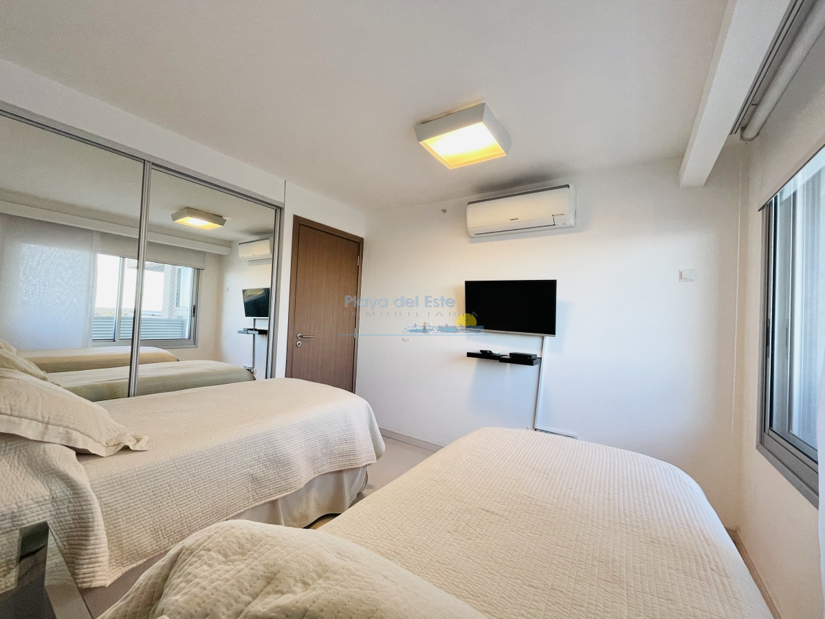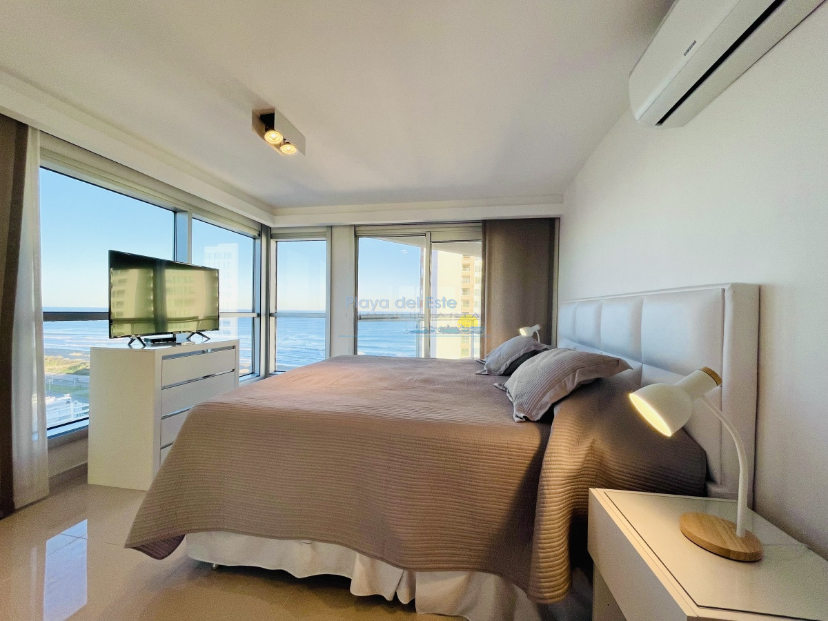 Excelente apartamento en piso alto con muy buena vista a Playa Brava, a pasos del mar.