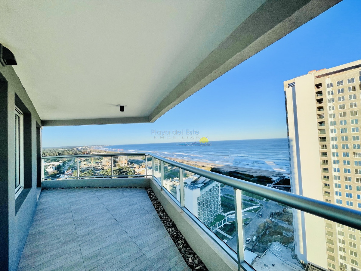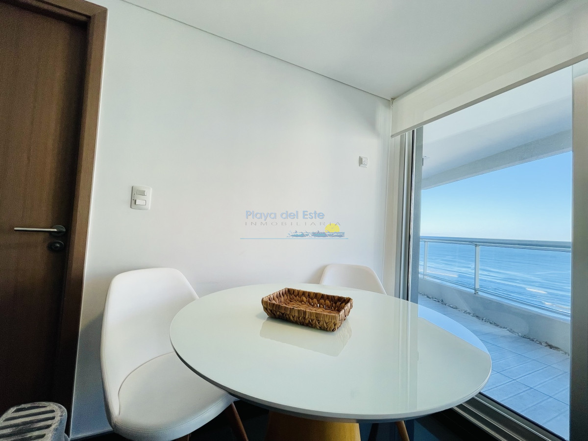 Muy buena planta, dispone de amplio living comedor con grandes ventanales que proporcionan una iluminación natural espectacular mirando el mar hacia La Barra de Punta del Este. Tres cómodos dormitorios que se funden en el horizonte marino. Principal en suite con salida al balcón, dos baños completos, más dependencia de servicio con baño y toilette. Cocina definida con doble circulación y vista al mar. Espacioso balcón con parrillero propio.