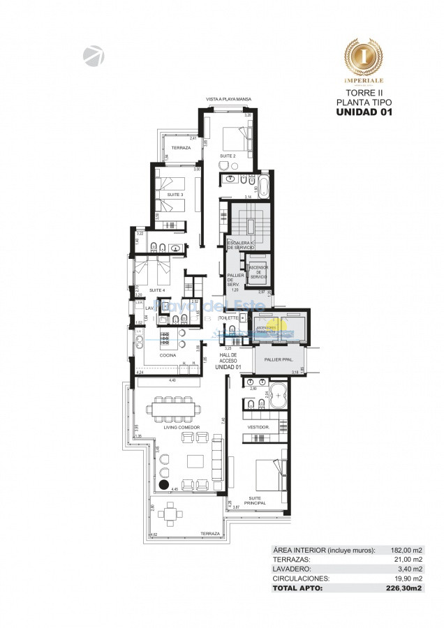 Apartamento en Torre Imperiale de 3 dormitorios , Punta del este , Playa Brava