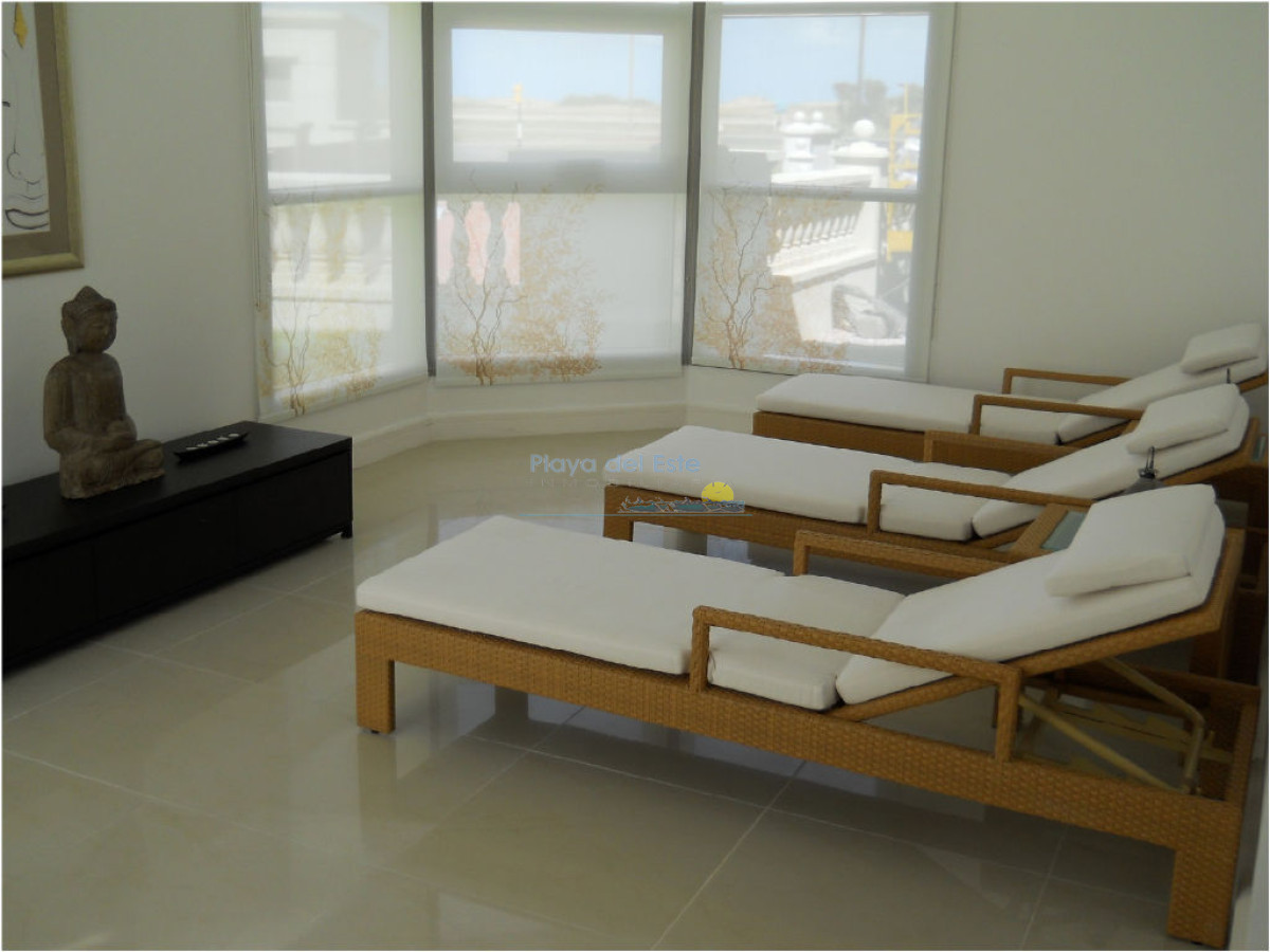 Torre de categoria, en playa brava, con los mejores amenities, 3 dormitorios en suite, dep. de servicio con baño, toilette, living comedor, cocina con lavadero, terraza, baulera, garage, microcine, sauna, piscina interna y externa, peluqueria, canchas, spa, play room de chicos y adultos, snack bar, servicio de mucama y de playa, gimnasio, lavadero, parrillero.