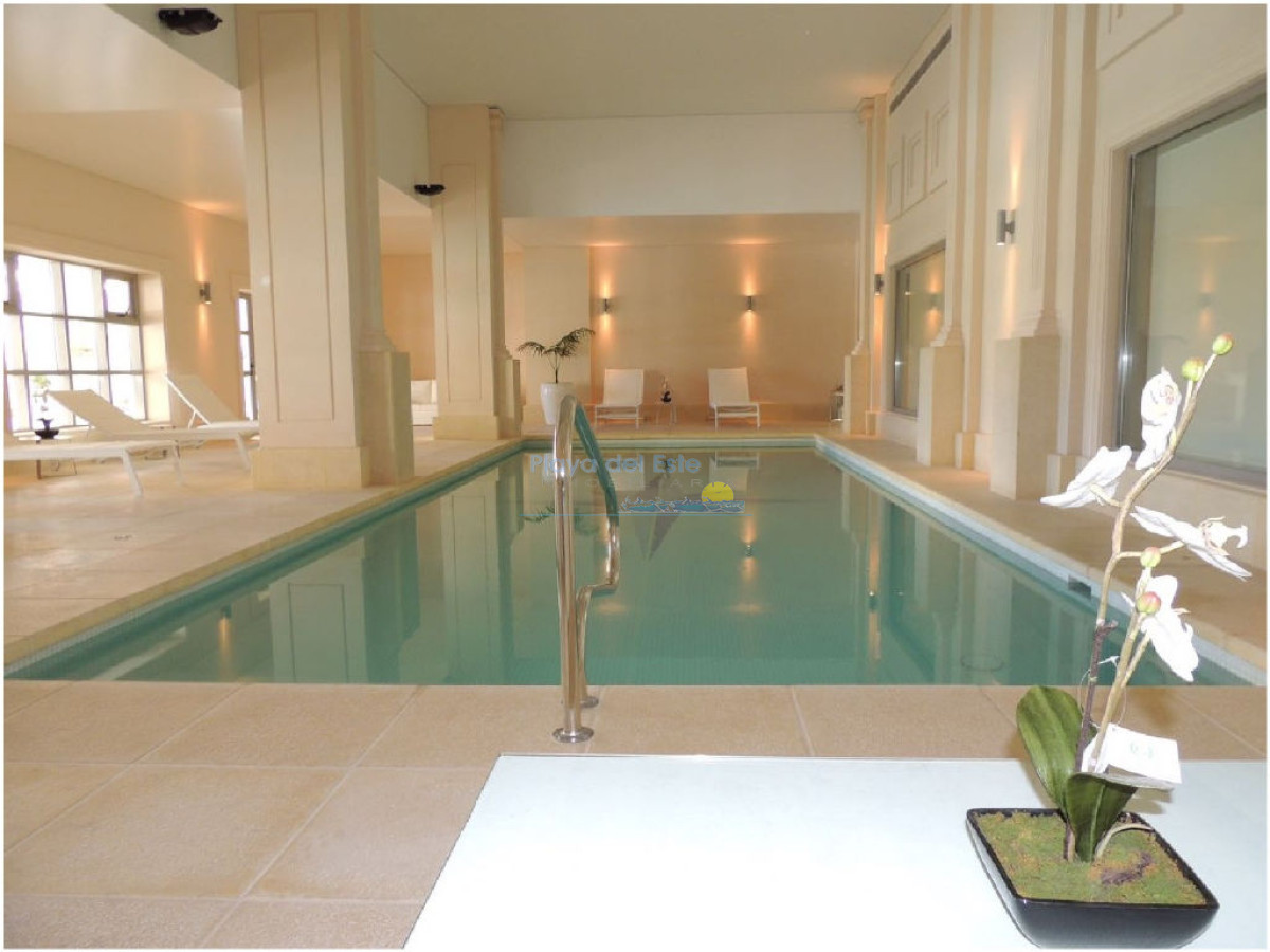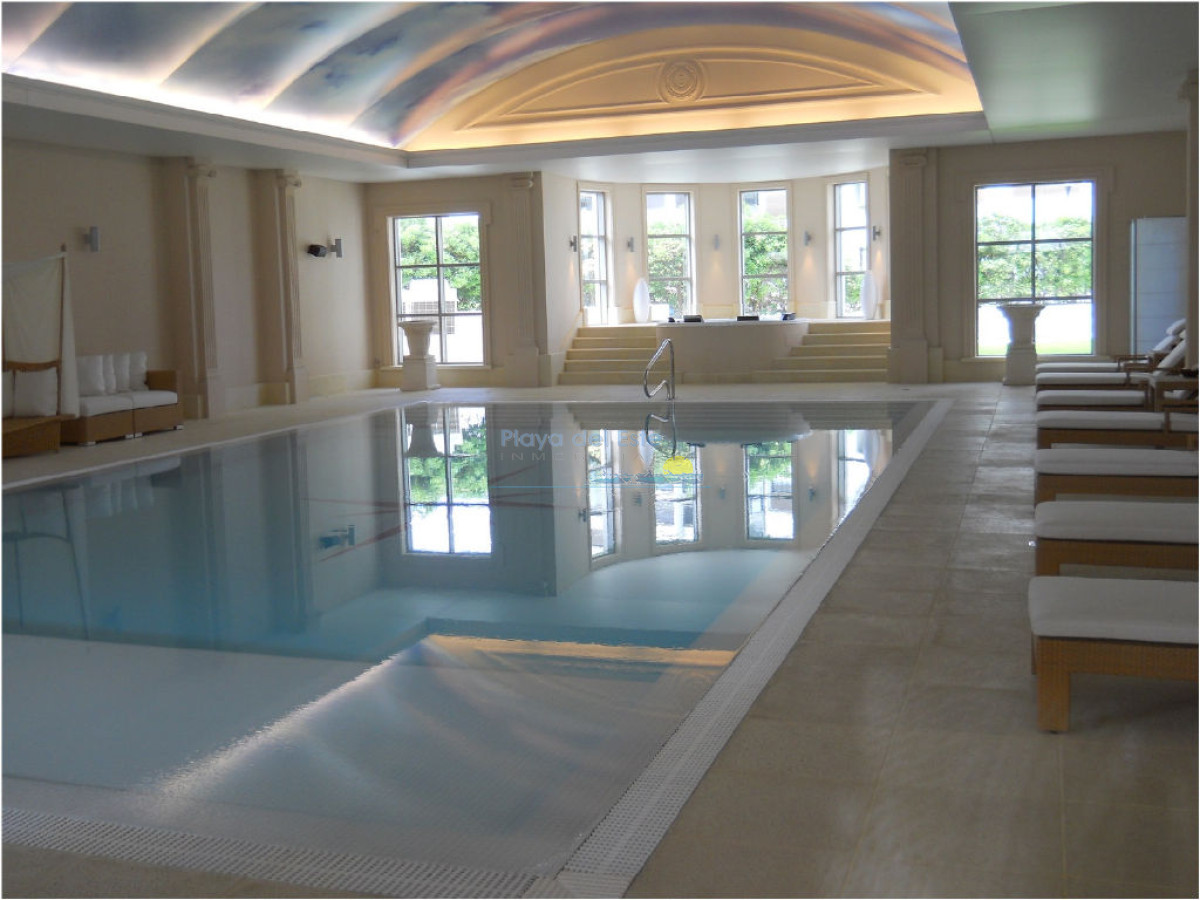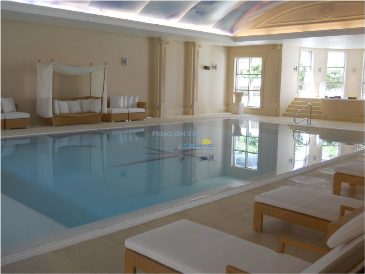 Torre con todos los servicios, 2 dormitorios en suite, toilette, living comedor, cocina, lavadero, terrza, baulera,garaje, piscina interna y externa, sauna, gimnasio, microcine, servicio de mucama y de playa, play room para grandes y chicos, spa, peluquería, canchas.