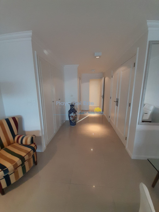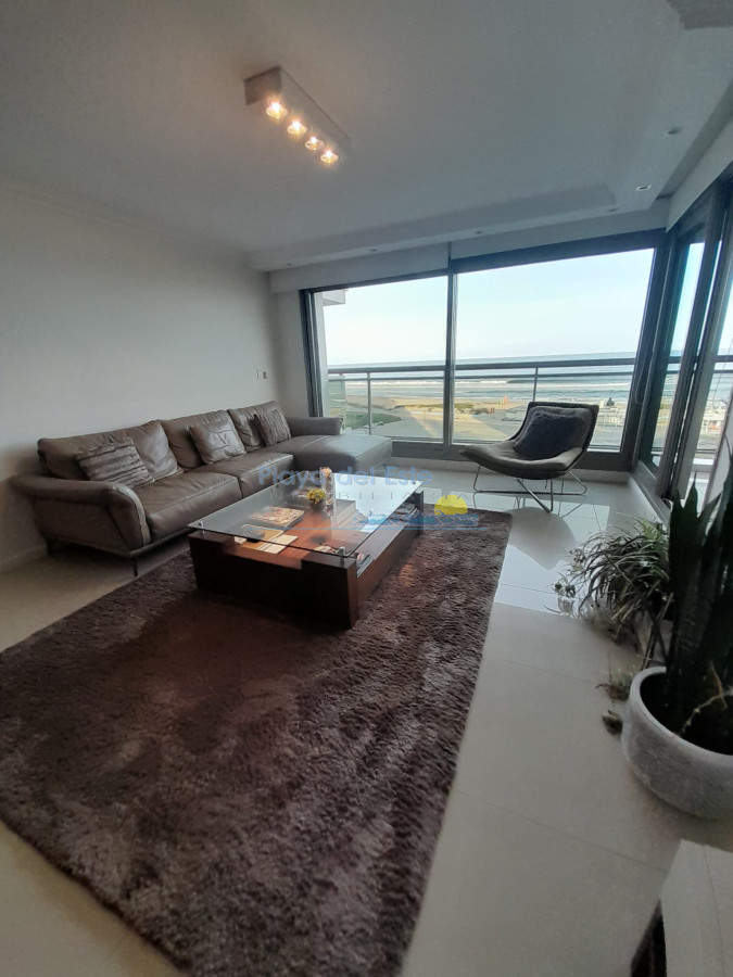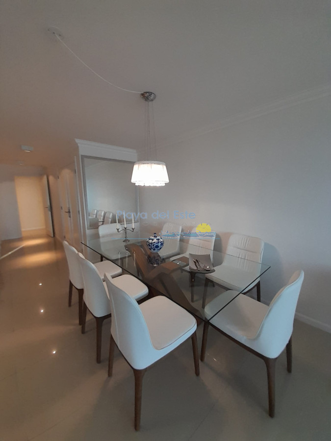 La unidad cuenta con living-comedor de amplias dimensiones, cocina definida, tres dormitorios, incluyendo suite principal, y espacios diseñados para aprovechar al máximo la luz natural y las vistas que ofrece Playa Brava. Sus ambientes brindan comodidad tanto para residencia permanente como para estadías de temporada, destacándose por su diseño funcional y elegante.
