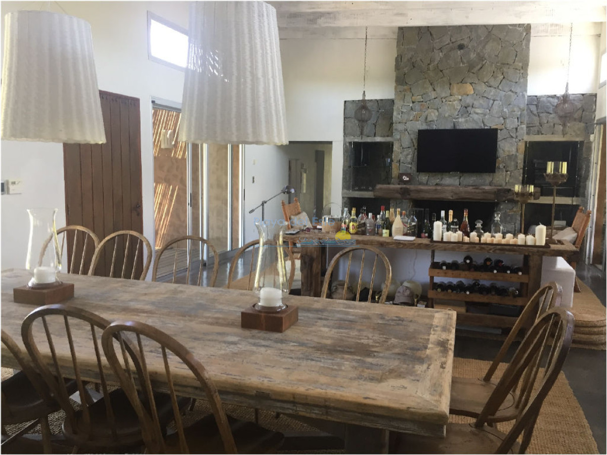 El interior de la casa combina materiales nobles y detalles rústicos con un diseño funcional y luminoso. Los espacios comunes, como el living y el comedor, se integran armoniosamente con la cocina, generando un ambiente cálido y acogedor, ideal para compartir momentos en familia o con amigos.