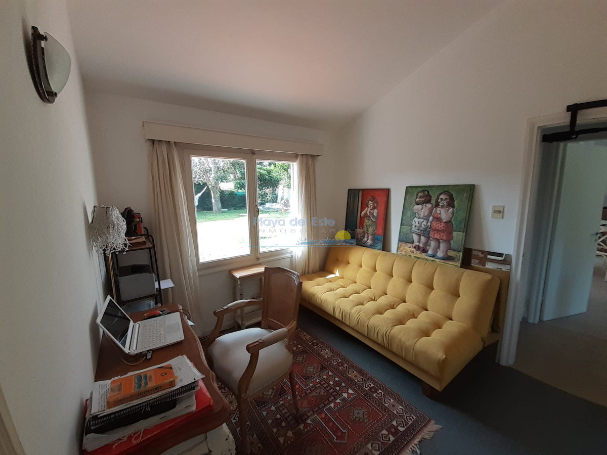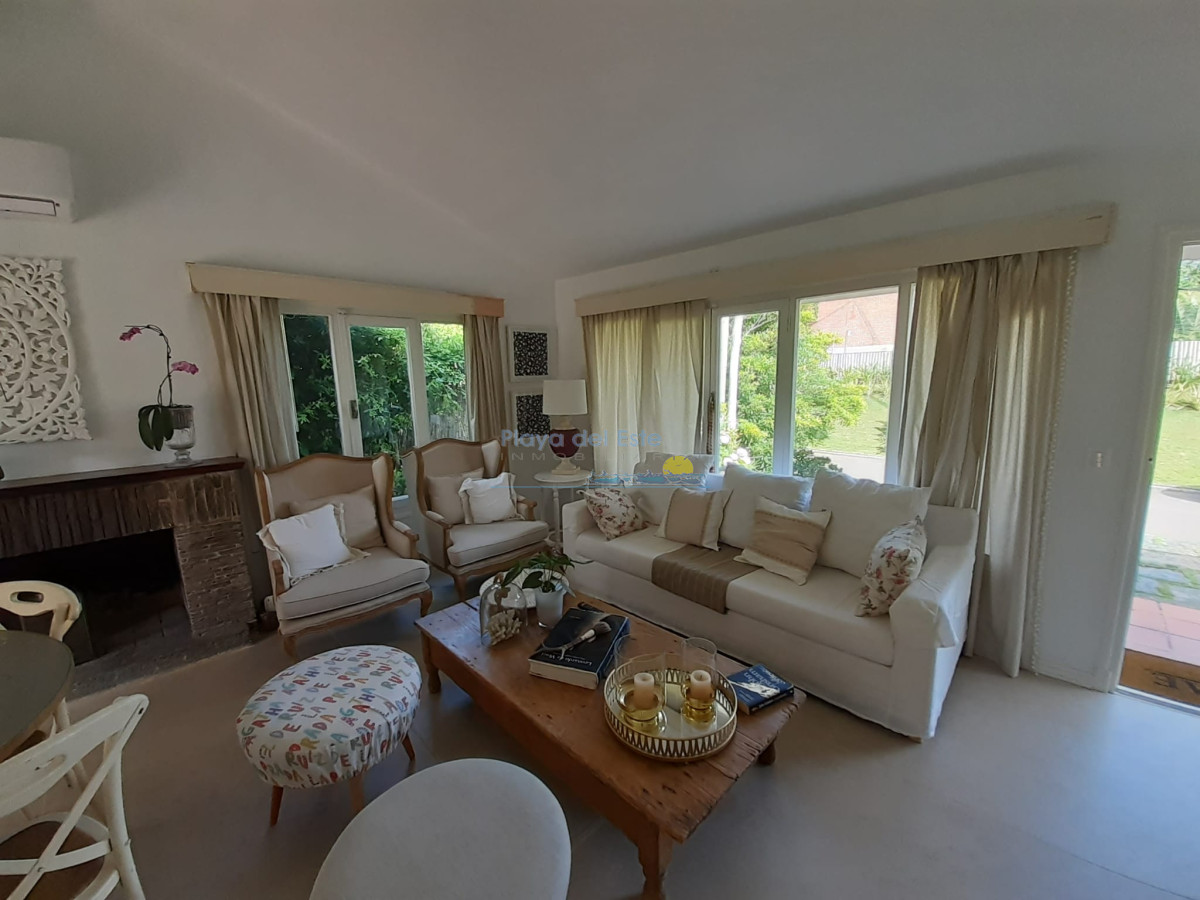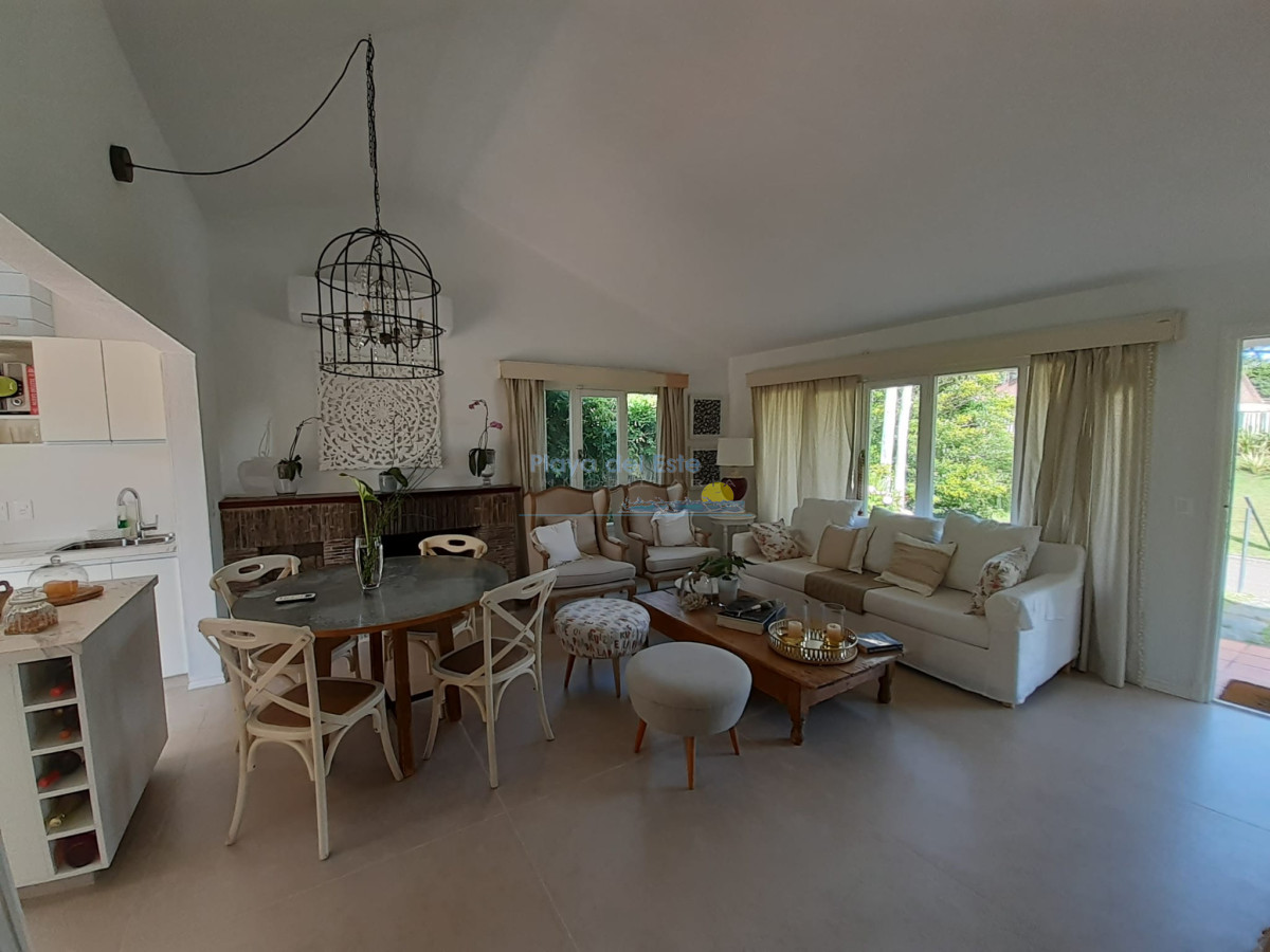 Chalet ubicado en un hermoso entorno de casas y jardines. Sólida construcción en un alto. Cocina reciclada e integrada al living comedor, pisos reciclados del living, aire acondicionado, 2 baños reciclados, 3 dormitorios, sala de escritorio con sillón cama, gran jardín con parrillero techado. Completamente cercada.