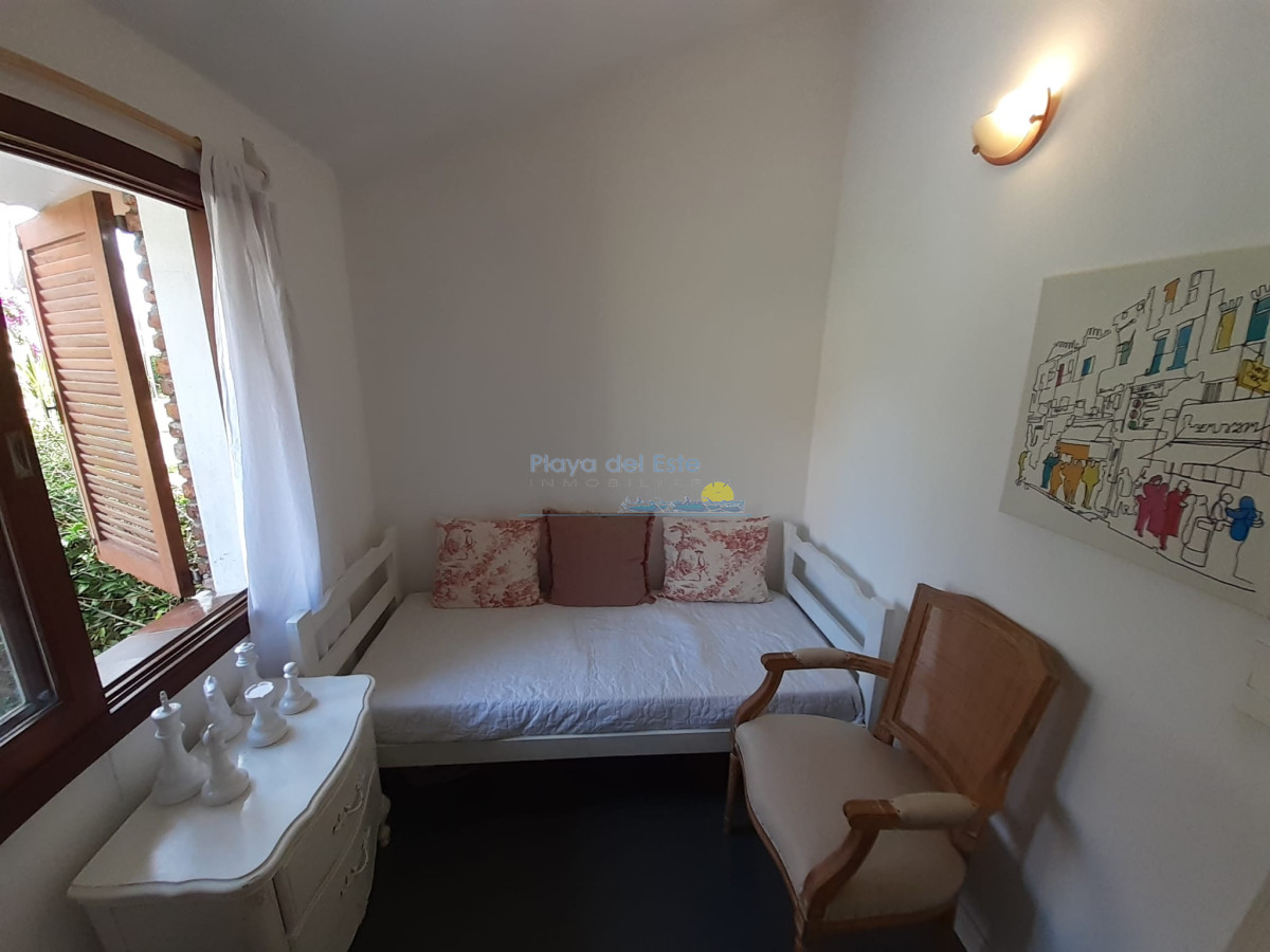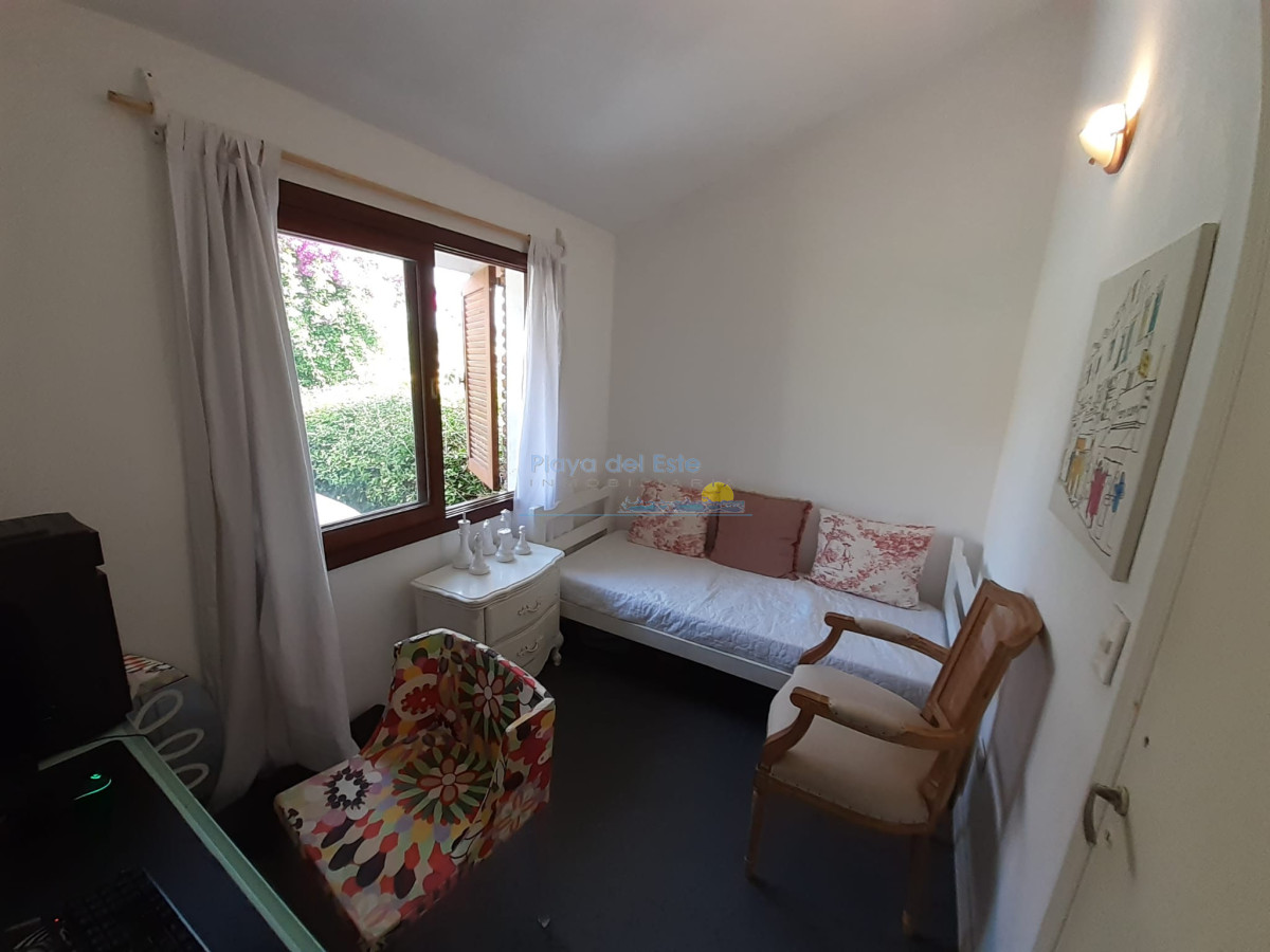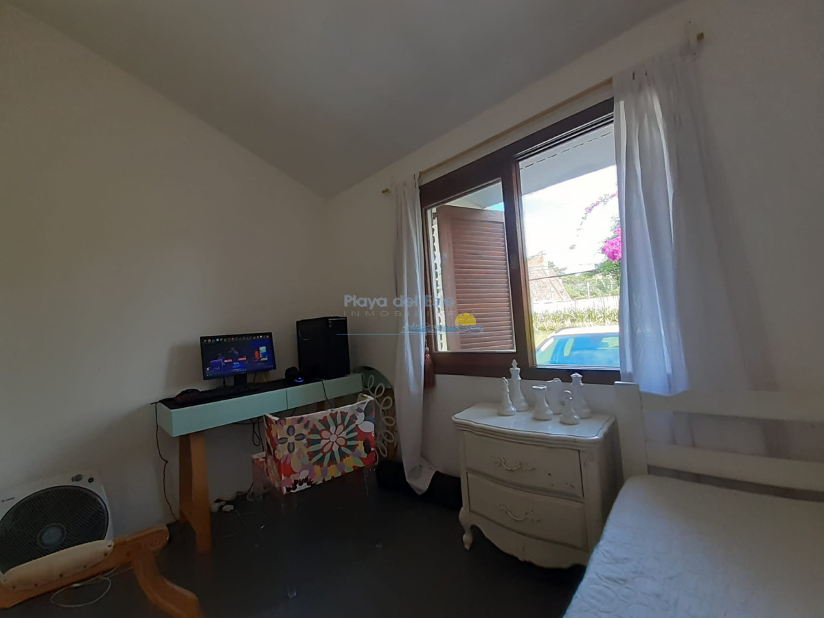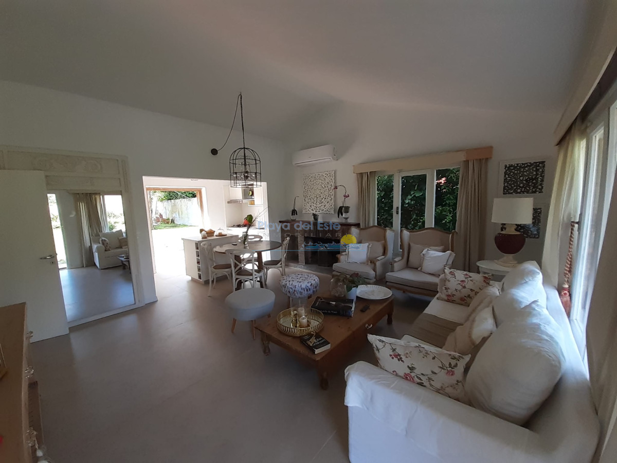 Chalet ubicado en un hermoso entorno de casas y jardines. Sólida construcción en un alto. Cocina reciclada e integrada al living comedor, pisos reciclados del living, aire acondicionado, 2 baños reciclados, 3 dormitorios, sala de escritorio con sillón cama, gran jardín con parrillero techado. Completamente cercada.