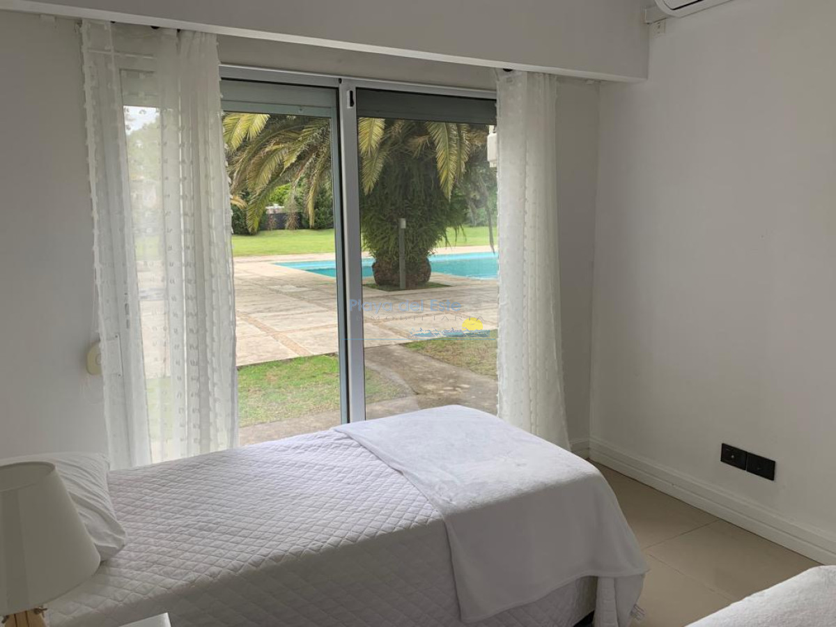 La casa dispone de cuatro cómodos dormitorios en suite, el master con vestidor y salida al balcón. Agradable hall de entrada unido al living con grandes ventanales, muy linda luz natural, hogar a leña, y amplio comedor bien equipado. El área social se comunica con la pérgola exterior y el gran jardín verde, donde se encuentra la piscina climatizada y el área de relax.