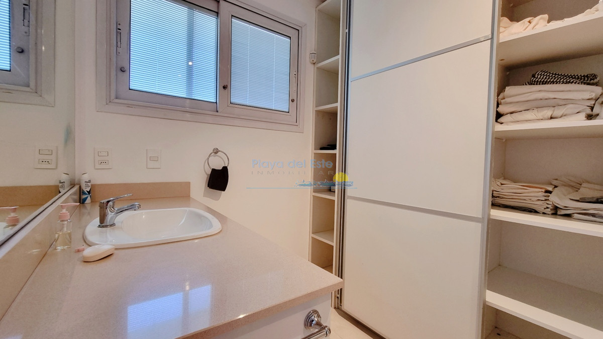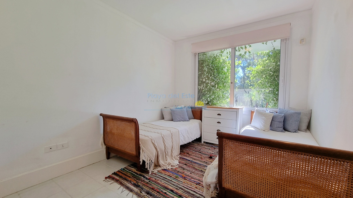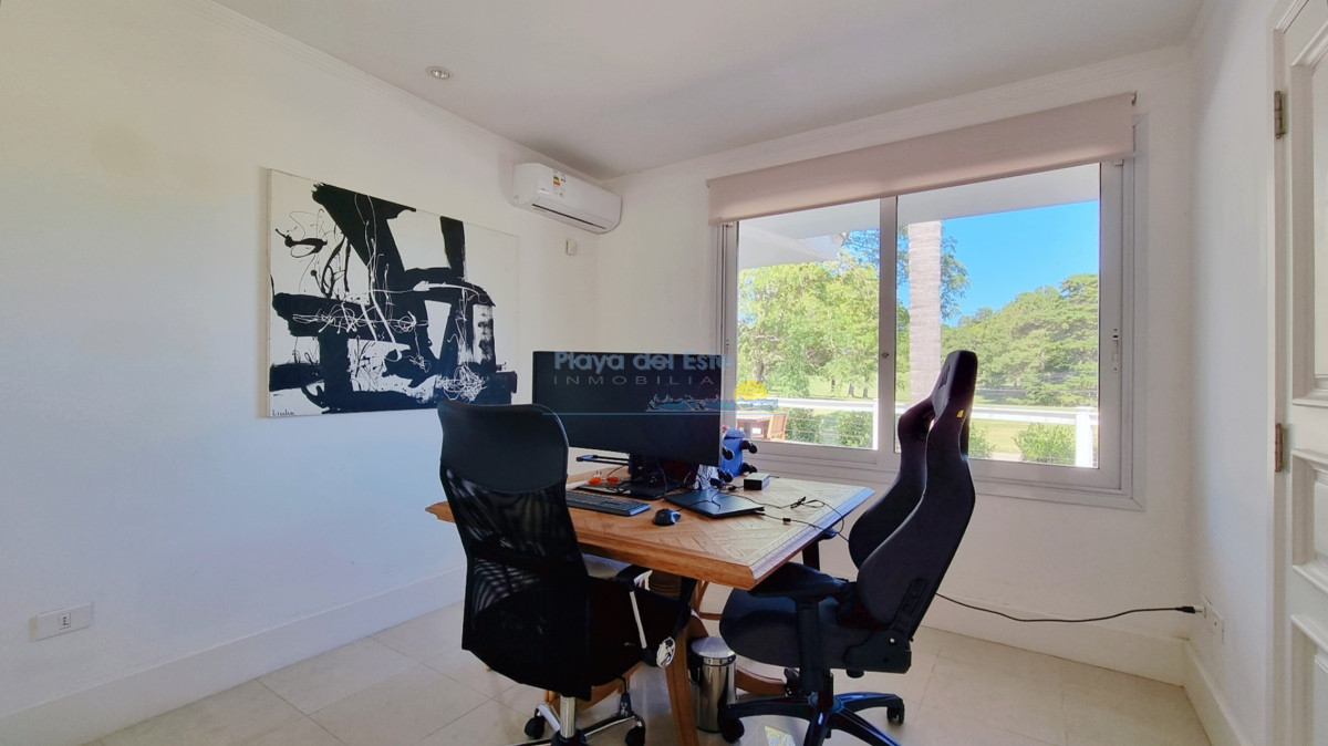 4 dormitorios (principal con dos vestidores y dos baños) 4 baños completos, 2 de ellos suites, escritorio (posible 5to dormitorio), toilette completo, amplio Living con ventanales y salida al deck con Jacuzzi y con vista al campo de golf. Cocina amplia e iluminada.