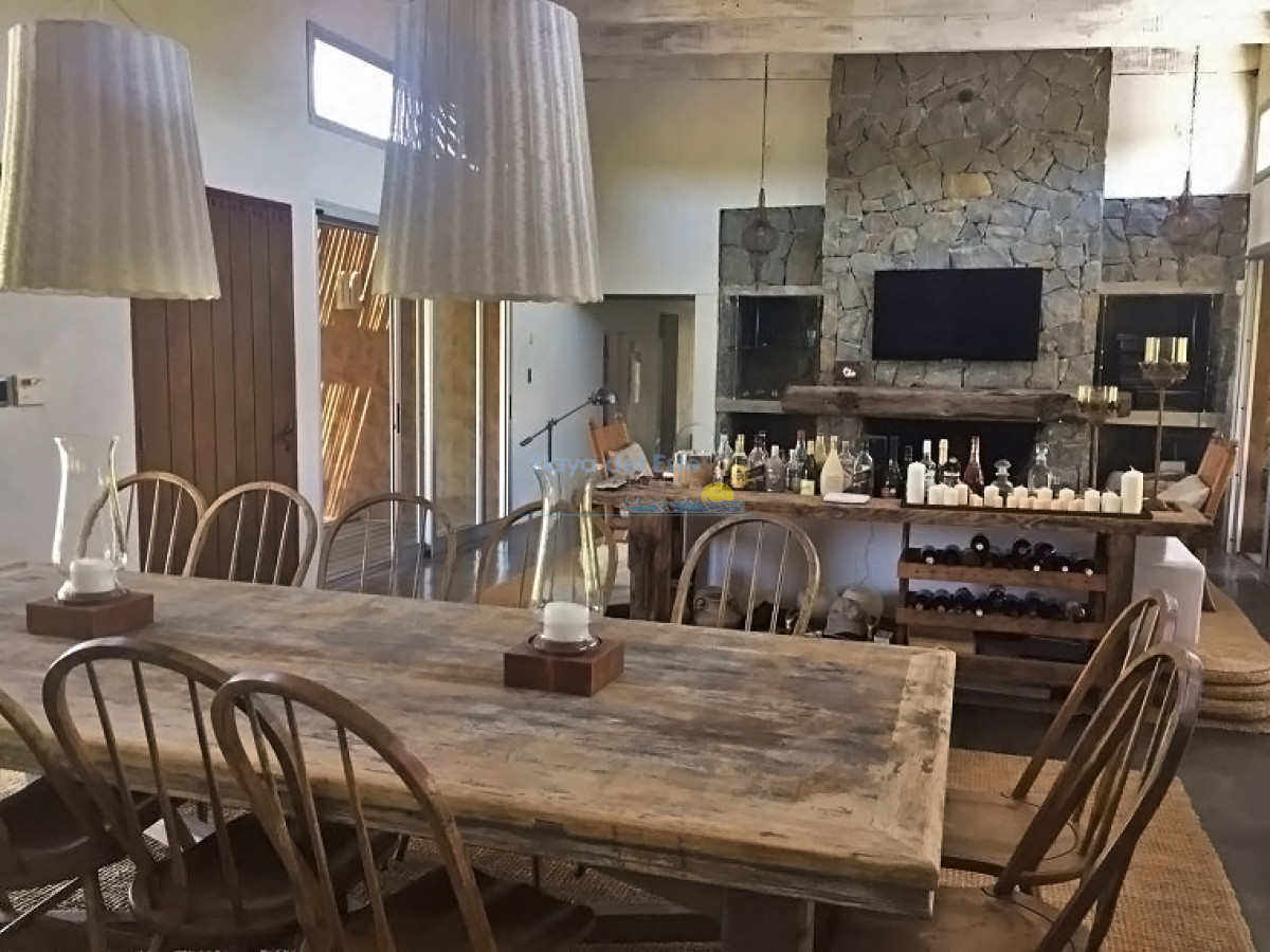 El interior de la casa combina materiales nobles y detalles rústicos con un diseño funcional y luminoso. Los espacios comunes, como el living y el comedor, se integran armoniosamente con la cocina, generando un ambiente cálido y acogedor, ideal para compartir momentos en familia o con amigos.